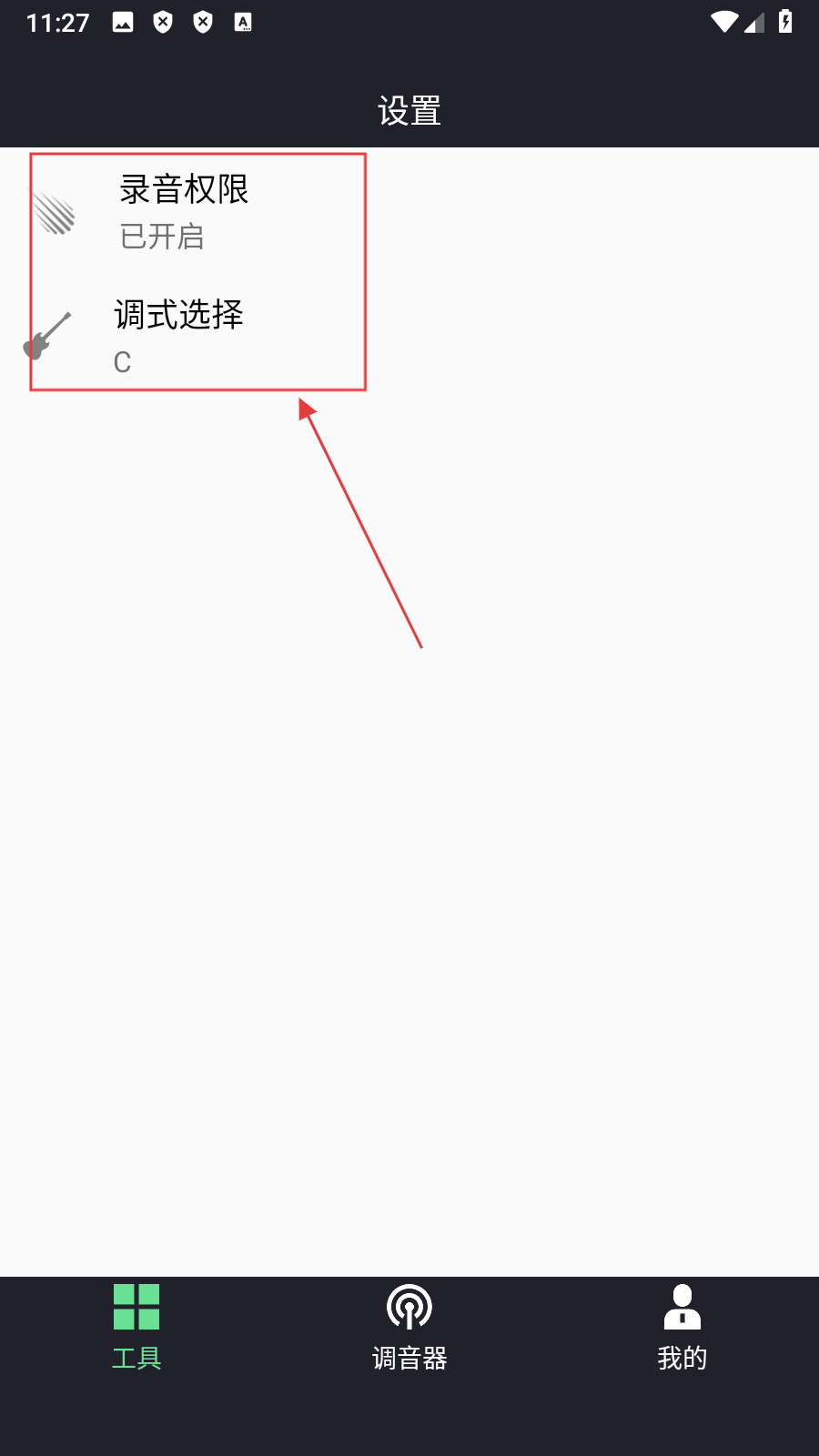 3、进入设置界面,可查看【录音权限】状态,还能进行【调式选择】,满足不同调音需求。