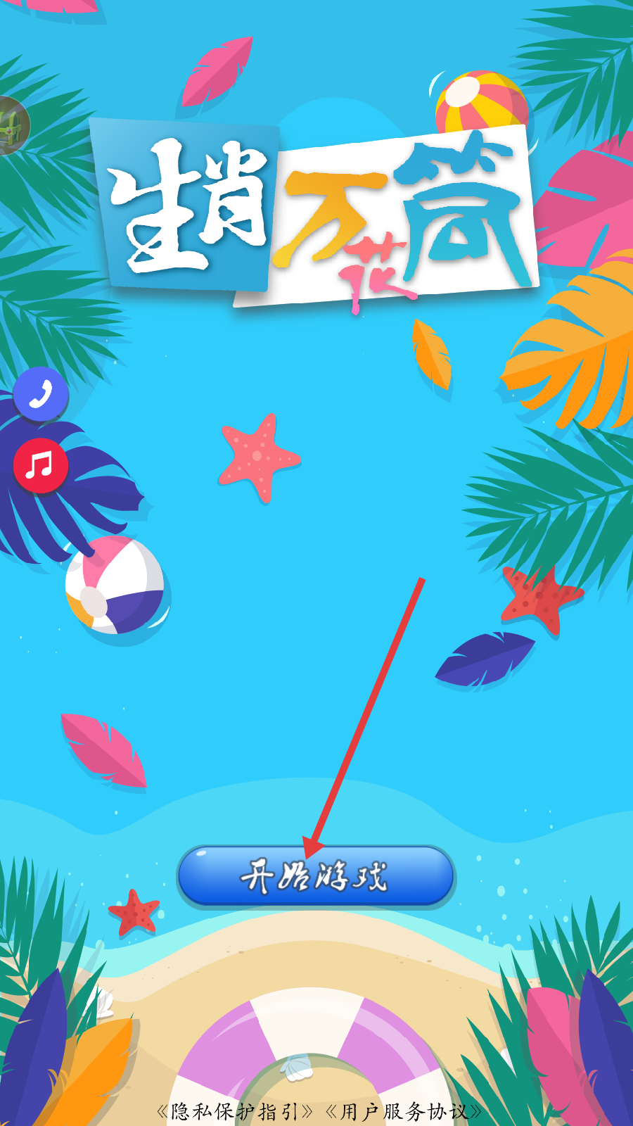 1、点击红色箭头指向的【开始游戏】按钮,进入《生肖万花筒》游戏。