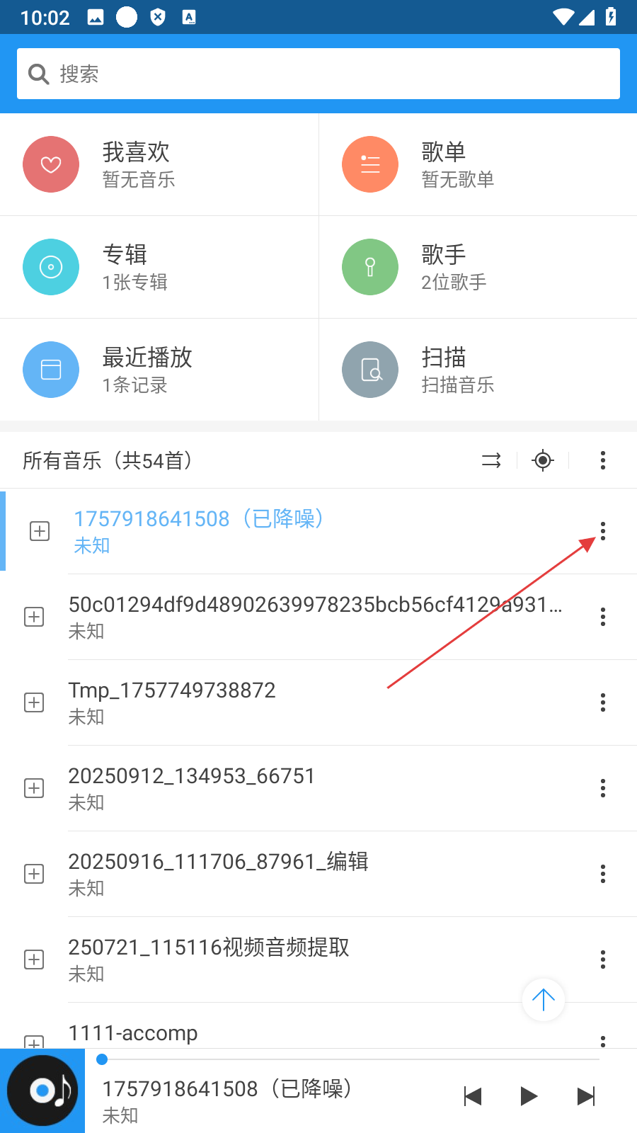 1、在音乐列表里,点击想要操作的音乐右侧的【三个点图标】,展开操作选项。