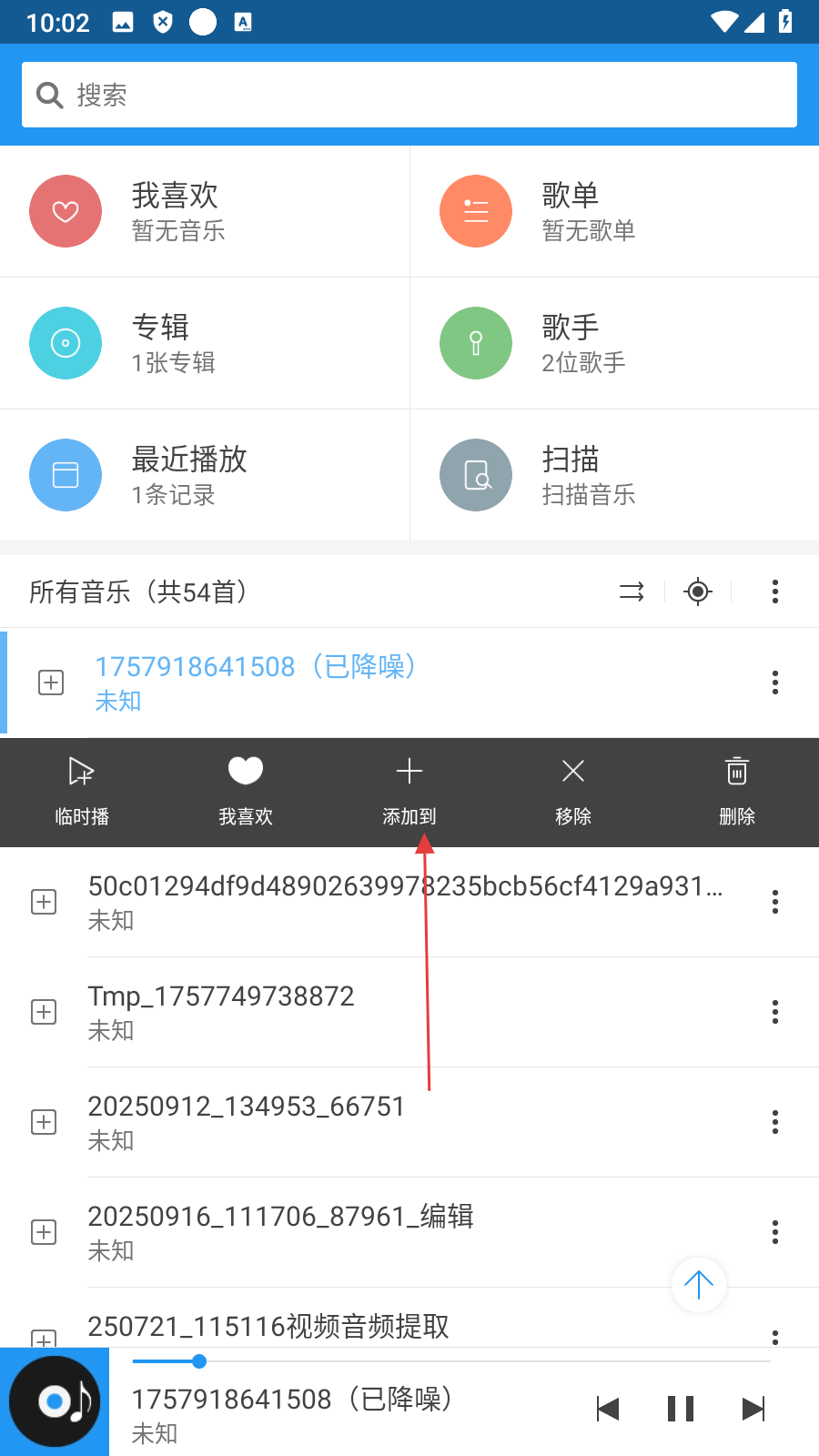 2、在展开的操作选项中,点击【添加到】,进入歌单选择页面。