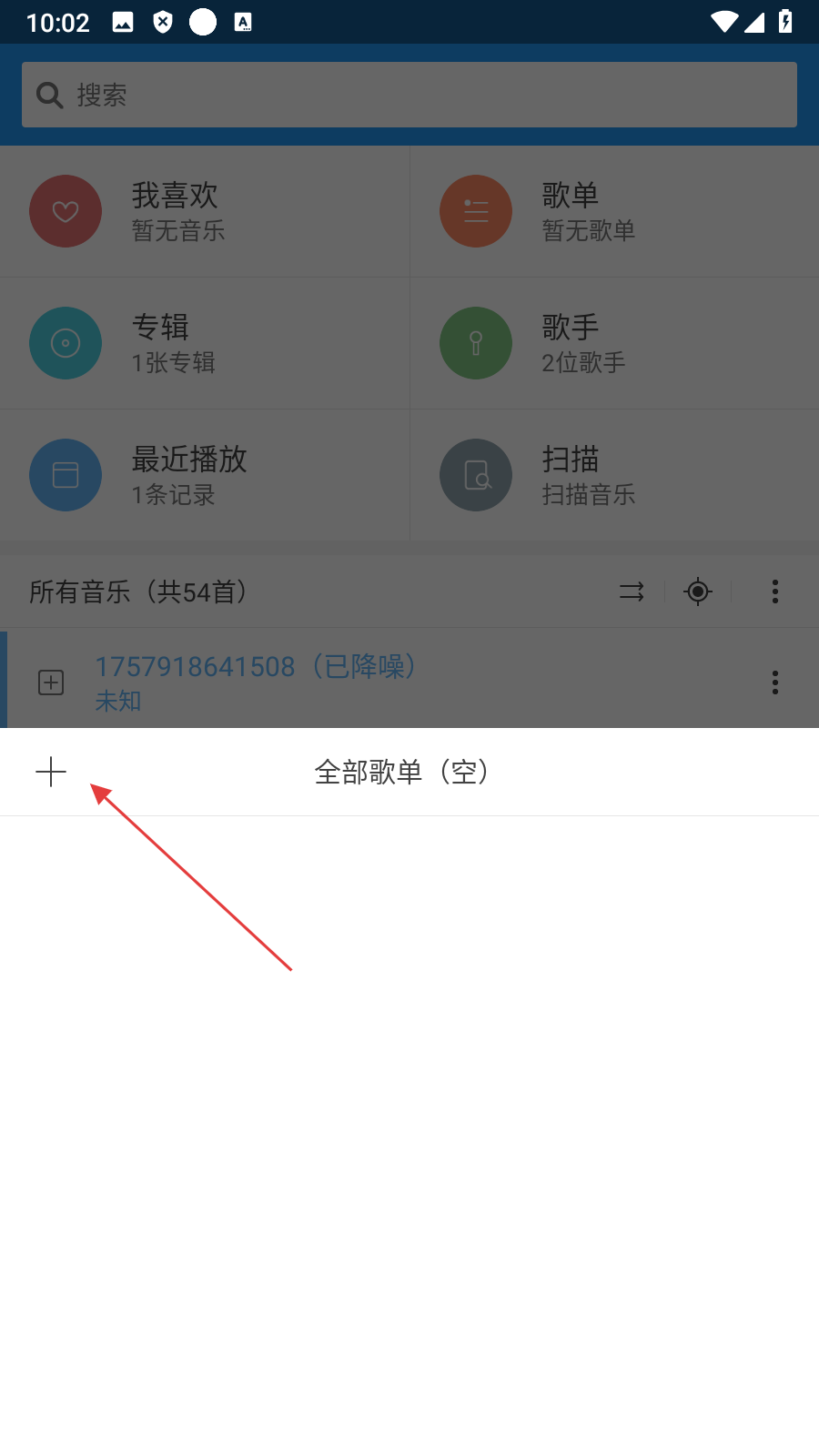 3、在歌单选择页面,点击【左侧的加号】,弹出新建歌单的窗口。