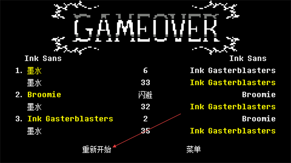 4、若战斗失败出现【GAMEOVER】提示,点击【重新开始】再次挑战。