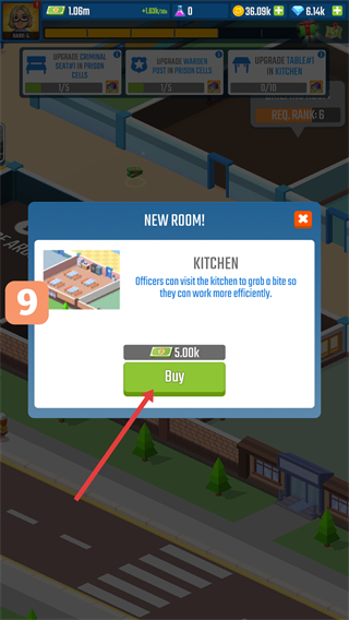 2、在新房间提示框中点击【Buy】按钮,花费5.00K资源购买厨房。