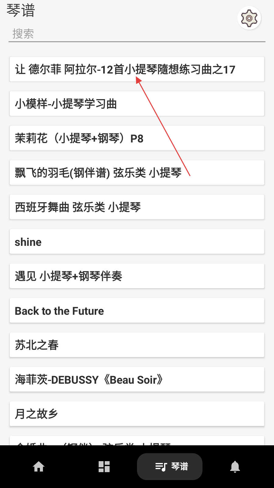 2、在琴谱列表页面,选择【想要查看的琴谱】,进入该琴谱详情页面。