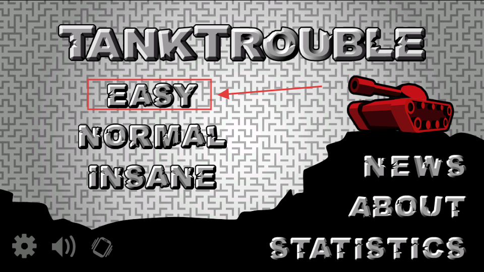 1、能选新游戏或存档进入对战,四个地图任挑,用坦克移动和子弹反弹摧毁敌方赢胜利,新意满满。