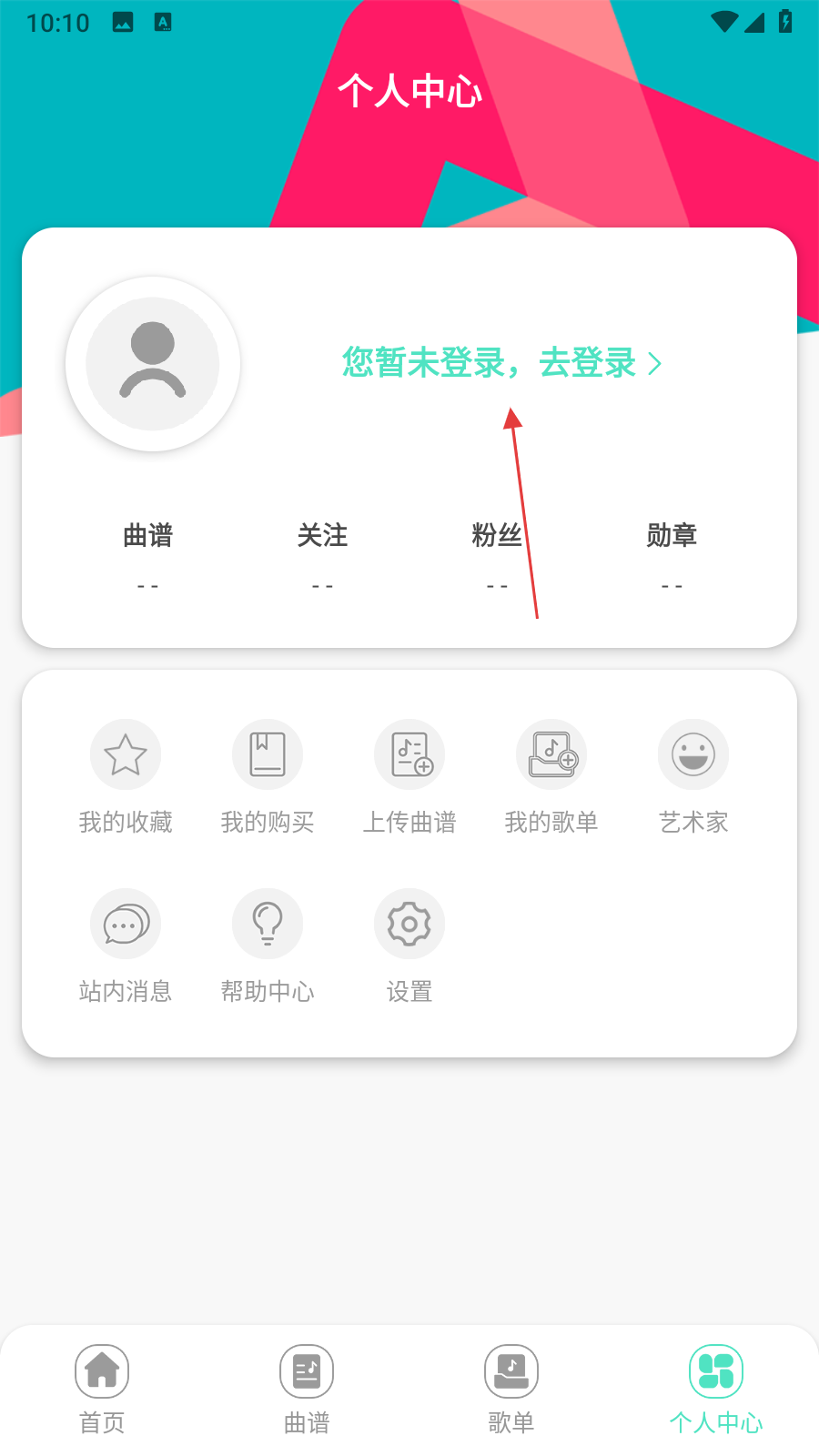 2、在个人中心页面,点击【您暂未登录,去登录】,进入内地登录页面。
