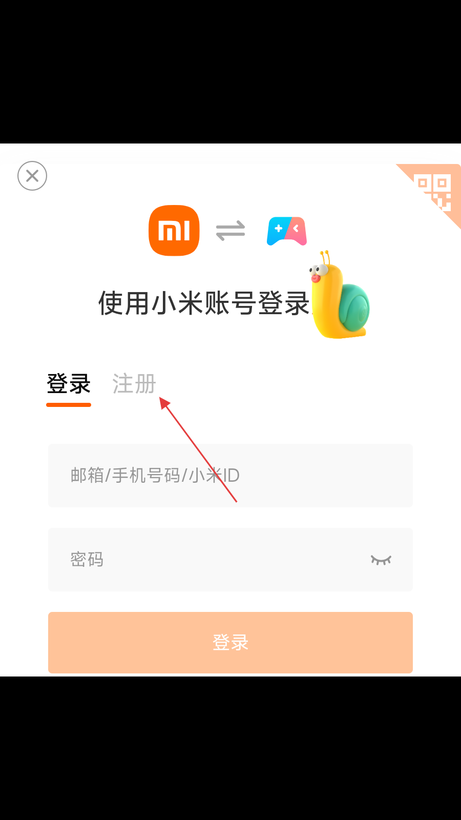 2、在使用小米账号登录页面,点击【注册】选项,进入小米账号注册页面。