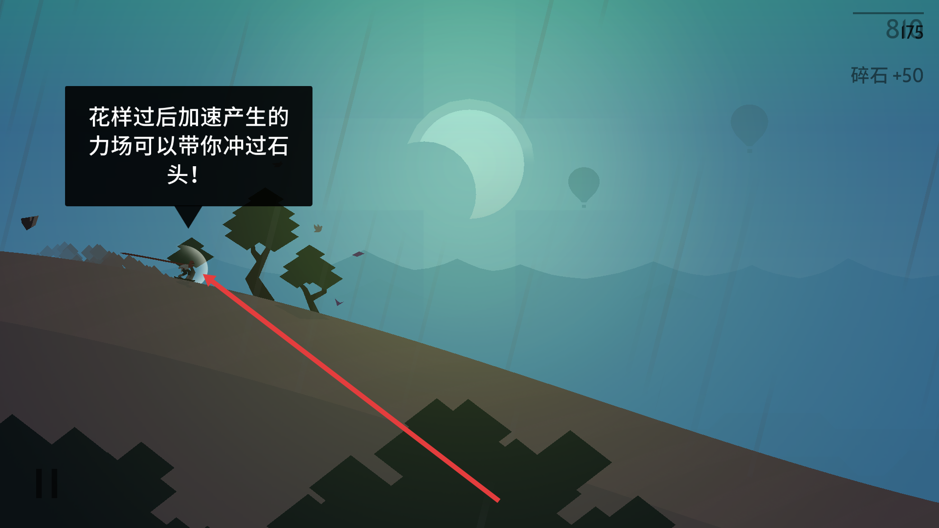 4、完成花样动作后利用加速力场冲击【石头】障碍,突破地形限制推进游戏进程。