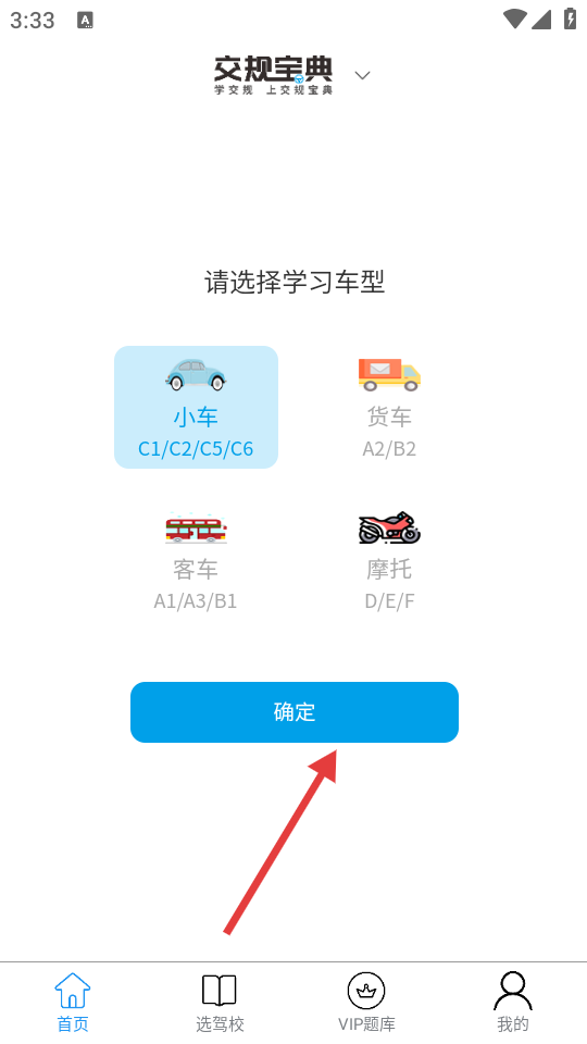 1、打开APP,选择所需学习车型,点击【确定】。