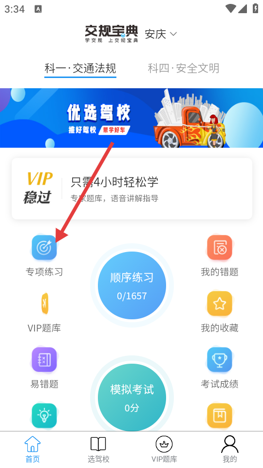 2、进入首页,选择点击专项练习功能。