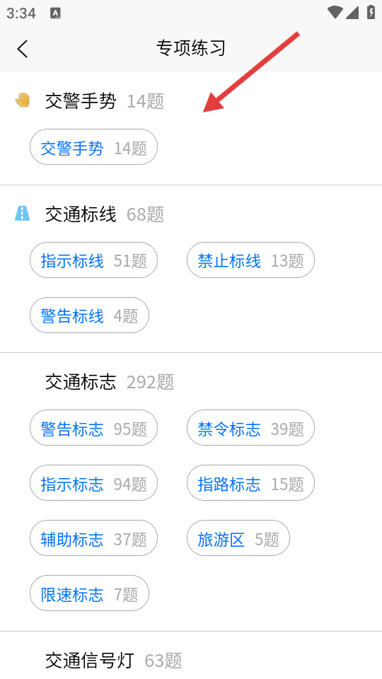 3、在专项练习页面,选择具体练习类别。