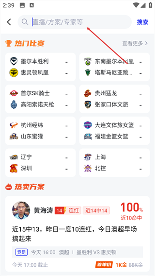1、进入APP首页,点击顶部的搜索栏。
