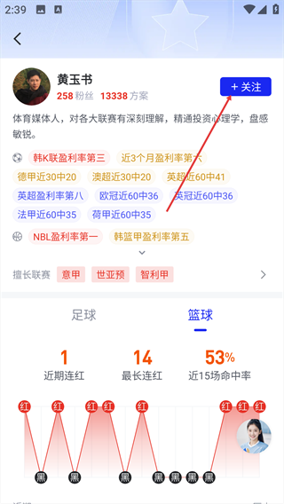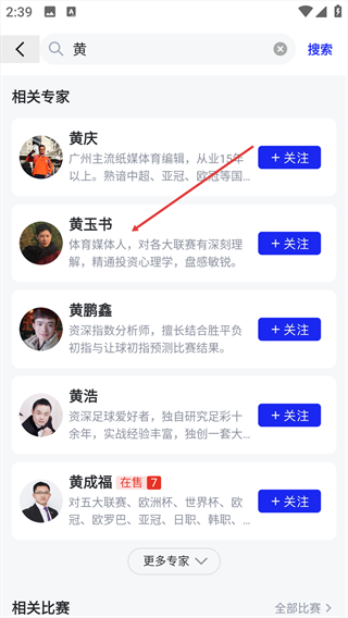 4、进入专家详情页面中,点击右上角的“+关注”按钮,完成对该专家的关注操作。