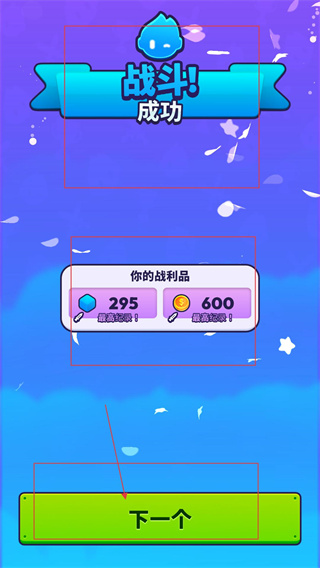 4、通关后可获得【295-蓝水晶】与【600-金币】奖励,点击【下一个】按钮进入后续关卡,继续积累资源与部队规模。