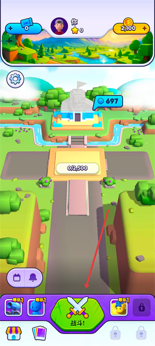 1、进入游戏主界面,点击下方绿色战斗按钮,进入闯关场景。