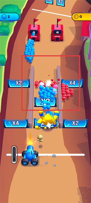 3、借助倍数道具提升数量,与轨道上的敌方展开对战。