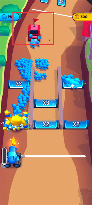 2、长按屏幕控制炮弹移动方向,让士兵经过倍数格子,翻倍数量前进。