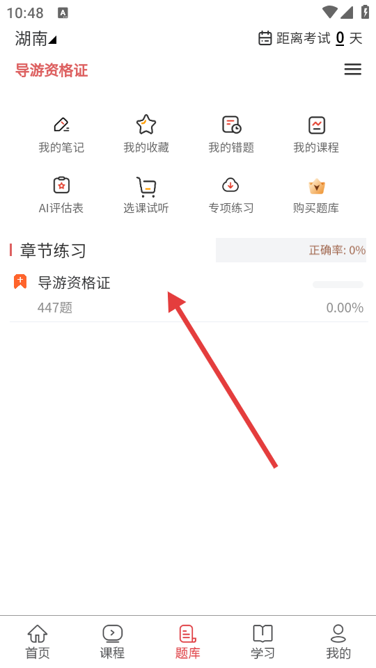 2、在题库页面,可选择【章节练习】,开始导游资格证相关题目练习。