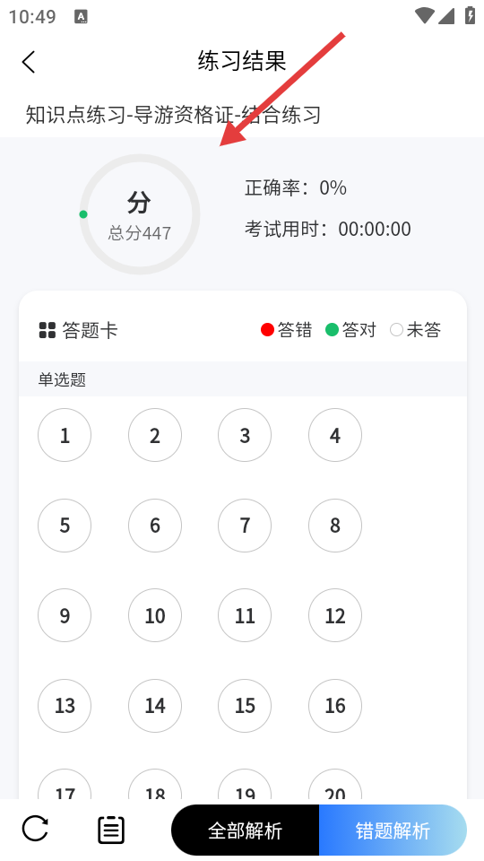 4、练习结束后,会生成练习结果,可查看正确率等,还能点击查看题目解析。