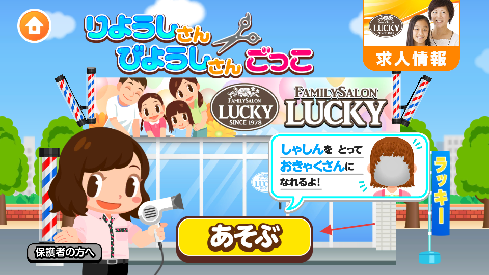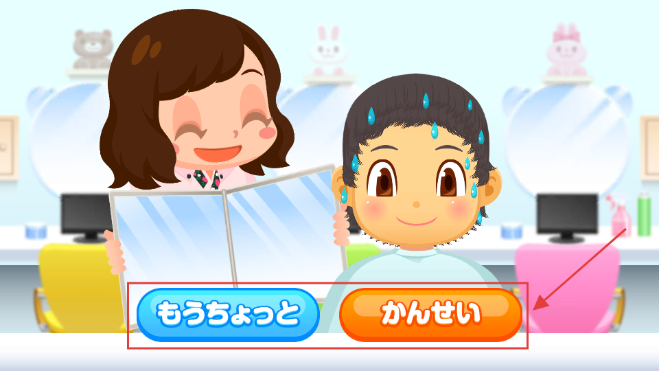 1、进入【理发店】场景后,点击【あそび按钮】即可开启为顾客提供理发服务的流程。