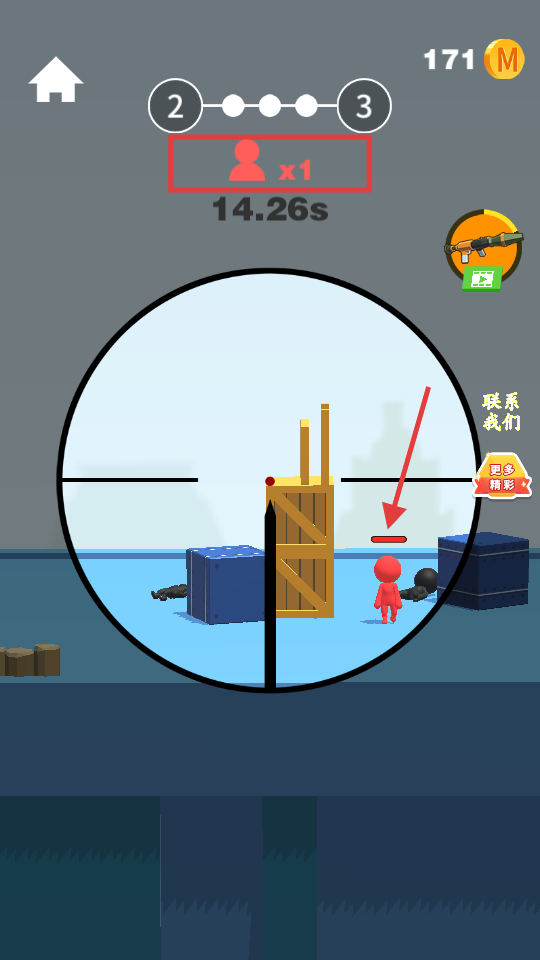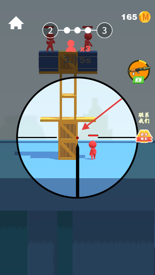 1、瞄准敌人时观察弹道轨迹,利用瞄准镜预判,优先射击高处暴露的【火柴人-目标】,提升击中效率。