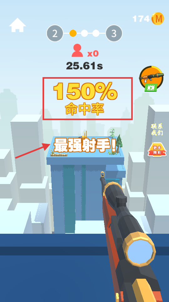 3、保持稳定瞄准和射击节奏,达成【150%】命中率获【最强射手】评价,高评价助解锁更多奖励。