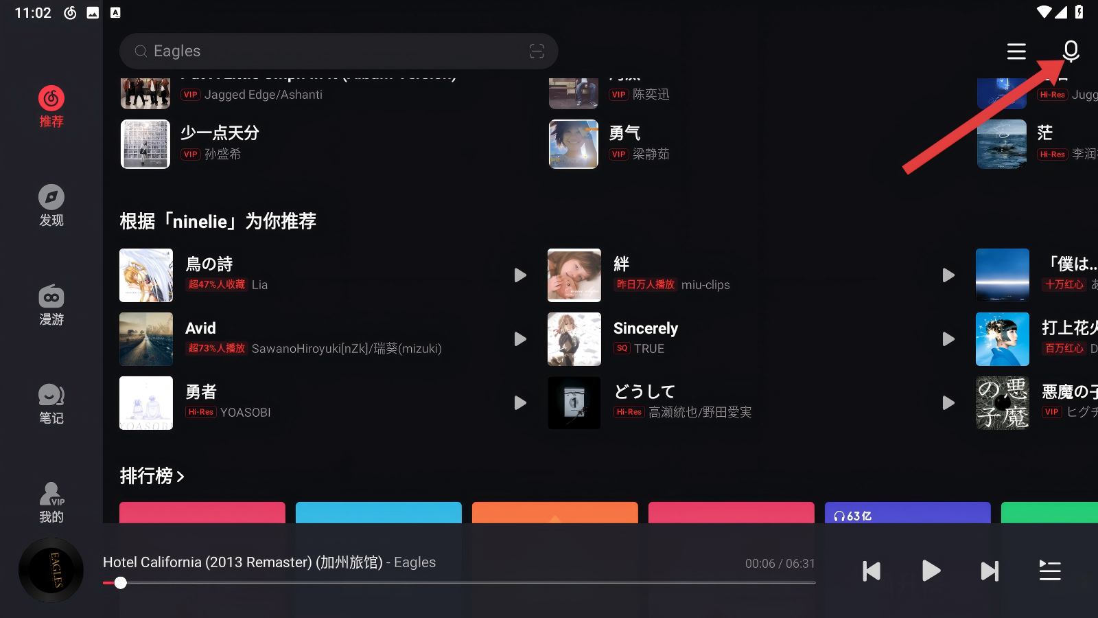 1、打开网易云音乐,点击右上角【麦克风】图标,就能进入听歌识曲的界面,开启音乐识别之旅啦。