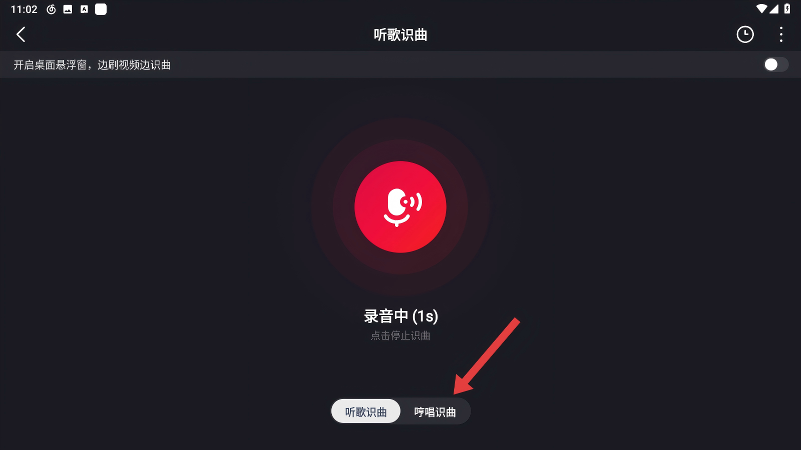 2、进入后能看到【听歌识曲】和【哼唱识曲】两个选项,要是只记得旋律,选【哼唱识曲】就好啦。