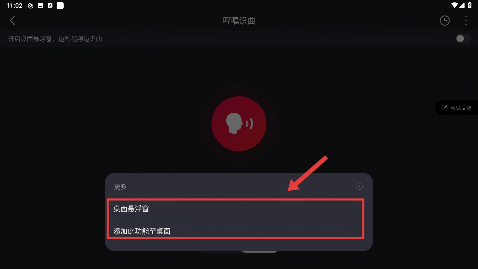 4、从展开的选项里,选择【桌面悬浮窗】等功能,这样刷视频时也能快速识别音乐,很便捷哦。