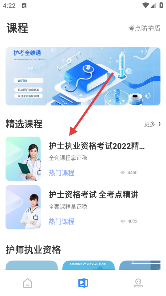 1、打开APP,点击底部【课程】按钮,进入课程页面。