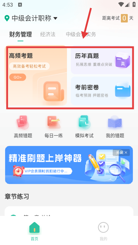 1、打开APP,在首页选择考题分类,进入专区页面。