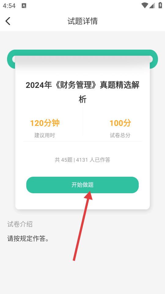 3、进入该真题卷试题详情页,点击【开始做题】,进入真题答题界面。