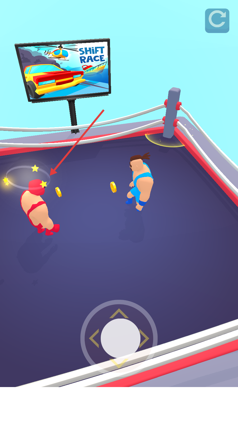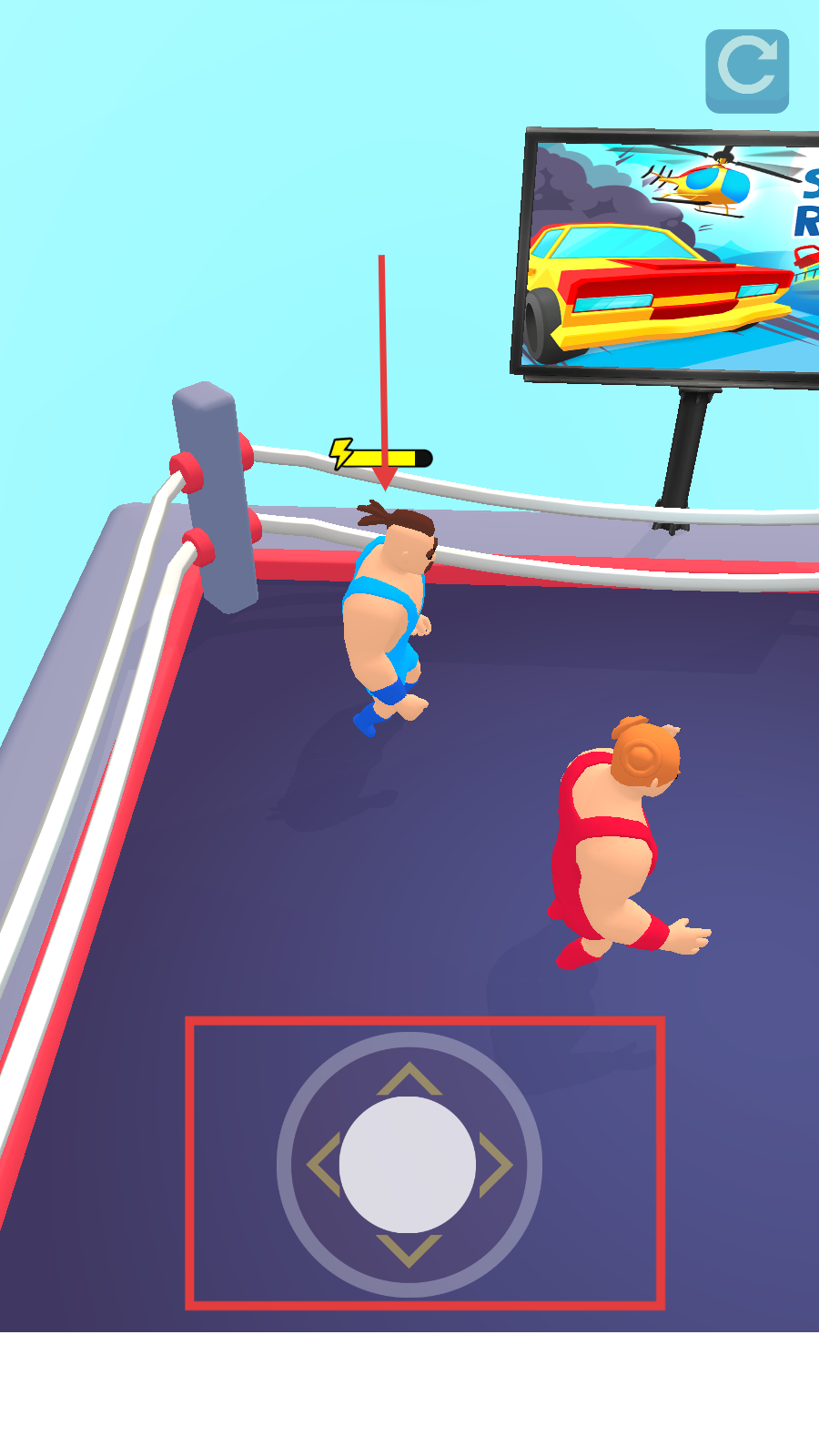 3、找准时机,对红色摔跤手发起攻击,尝试击败对手。