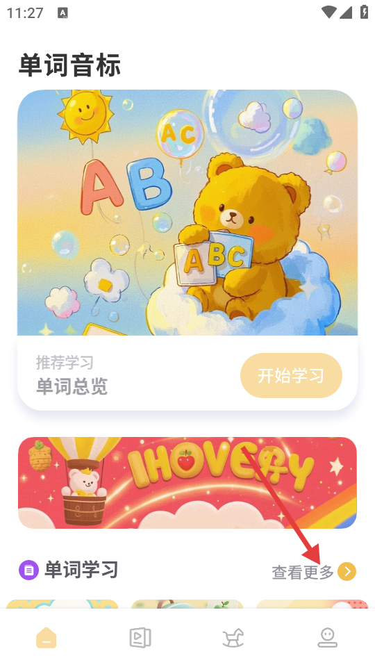 1、打开APP,在首页中,点击“单词学习”右侧的【查看更多】。