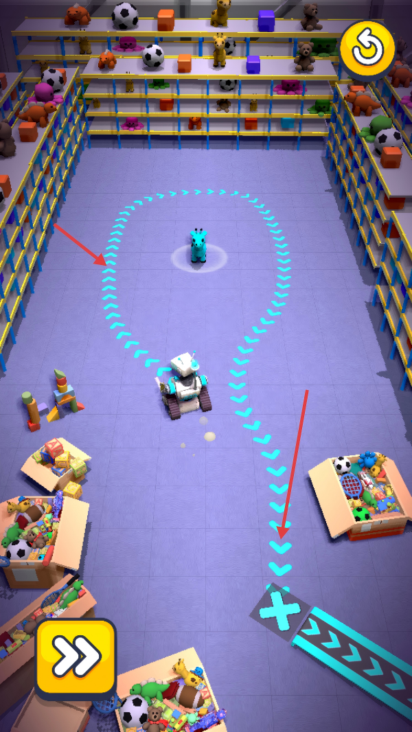 2、操控机器人沿蓝色箭头路径移动。