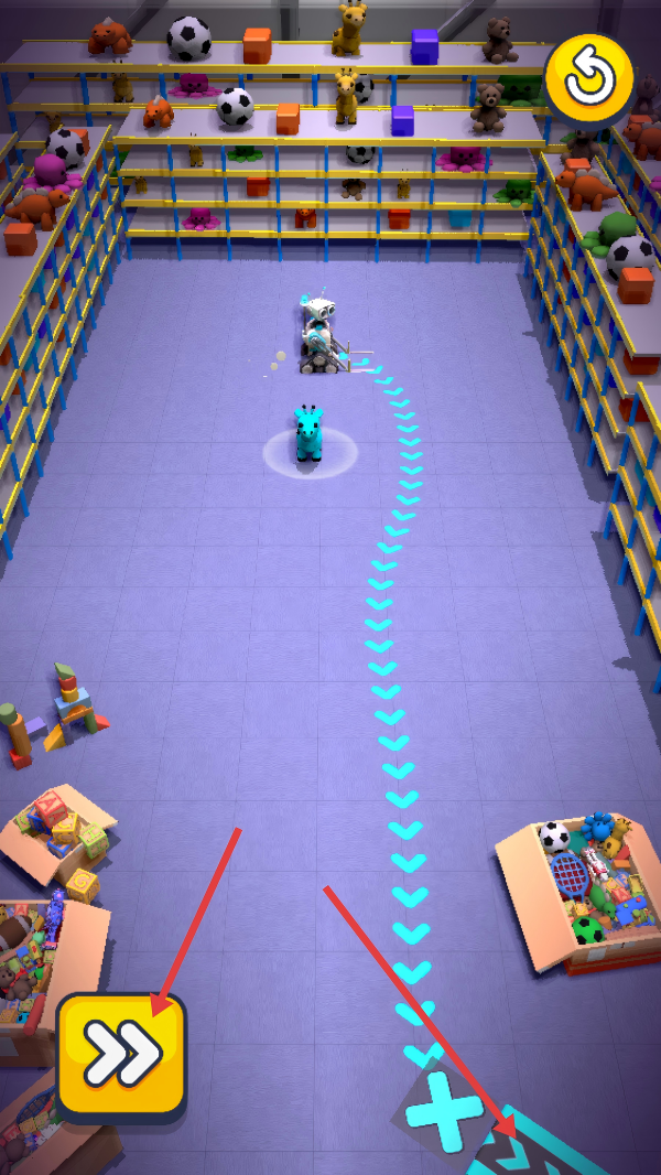 3、点击黄色加速按钮,让机器人加速行进。