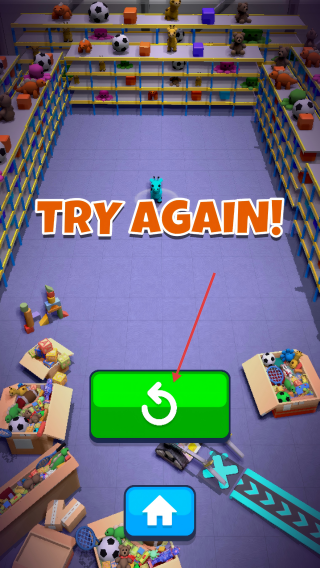 4、若游戏失败,点击绿色重试按钮重新开始。