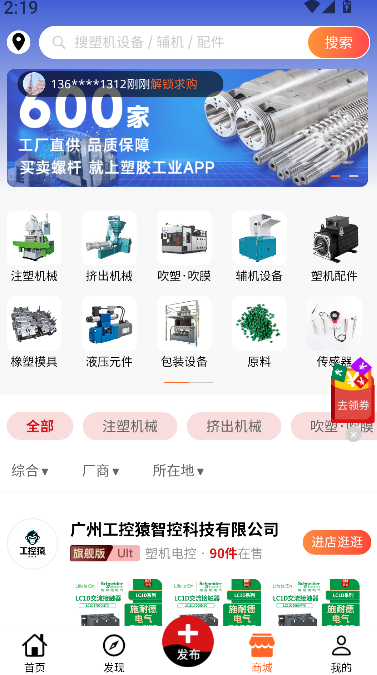 1、打开《塑胶工业》软件后,进入配件商城浏览可用的塑胶配件资源。