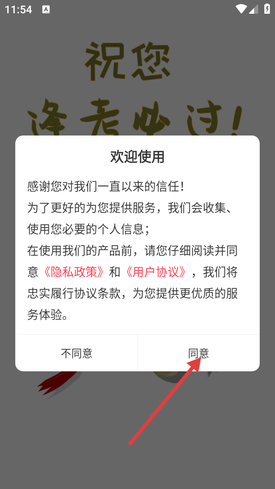 1、打开软件,阅读并同意《隐私政策》和《用户协议》后,点击“同意”。