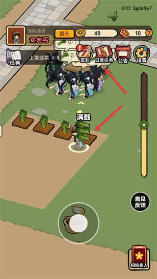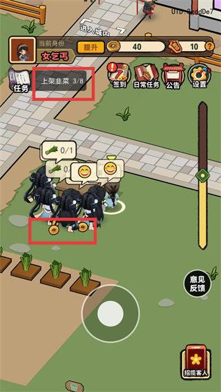 3、收割韭菜至满载状态后,前往界面中的人群区域,准备完成“上架韭菜0/8”的后续任务。