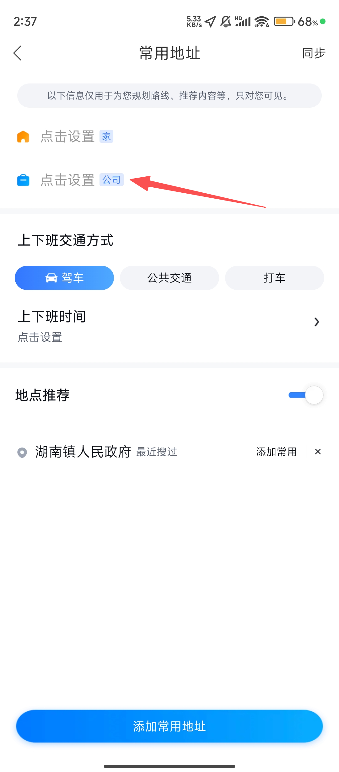 2、进入常用地址页面后,找到【点击设置-公司】选项,点击它,进入公司地址设置界面啦。