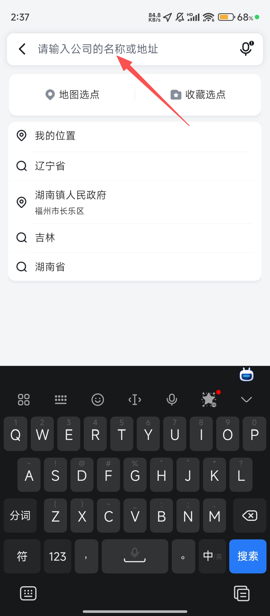 3、在公司地址设置界面的搜索框中,输入公司的名称或地址,进行查找定位哟。
