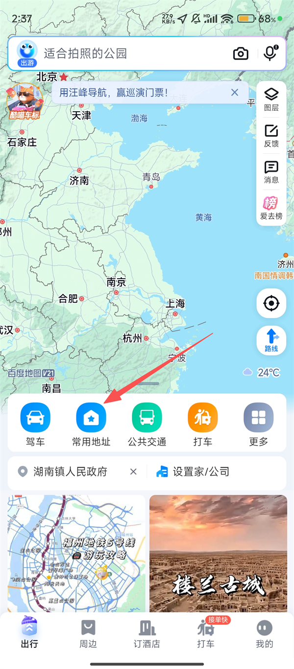 1、打开百度地图,在出行页找到【常用地址】按钮,点击进入,开启公司地址设置的操作哦。