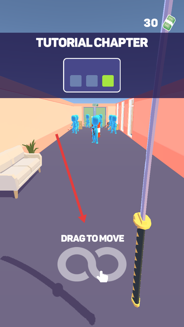 1、拖动屏幕控制角色在走廊场景中移动,开始教程章节的挑战。