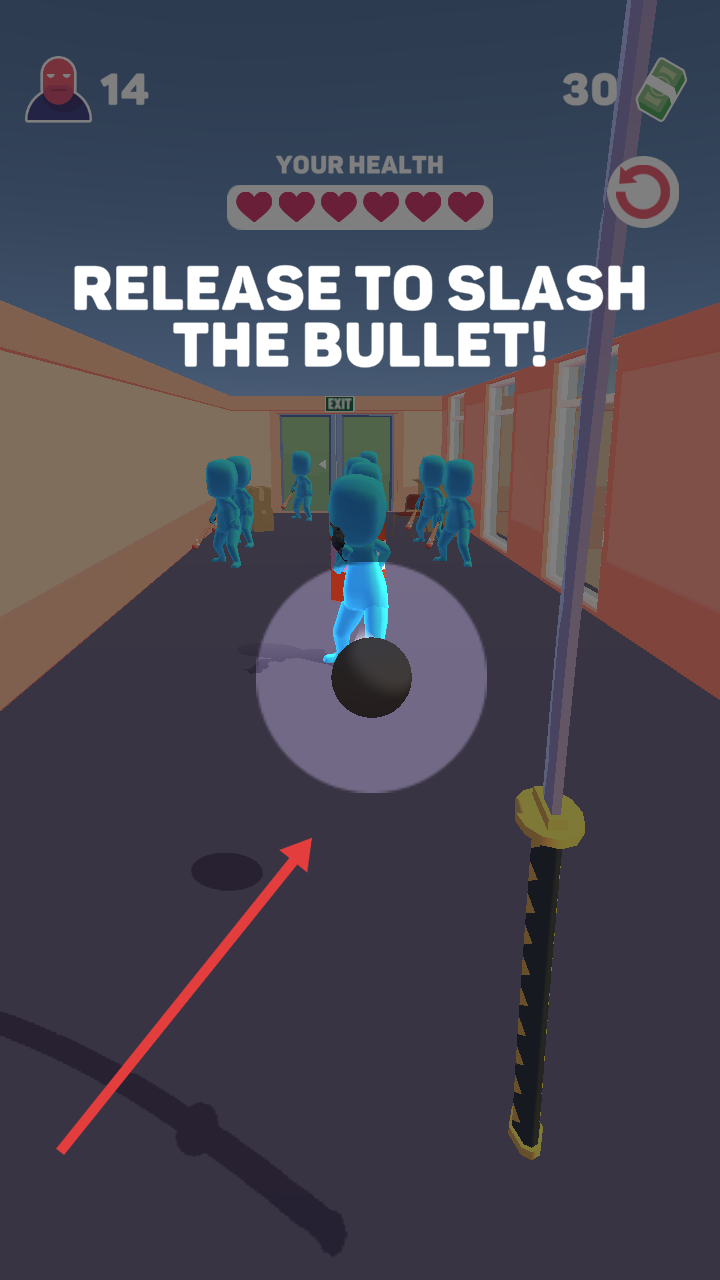 2、在遇到子弹攻击时,释放操作来挥刀格挡子弹,保护自身健康值。