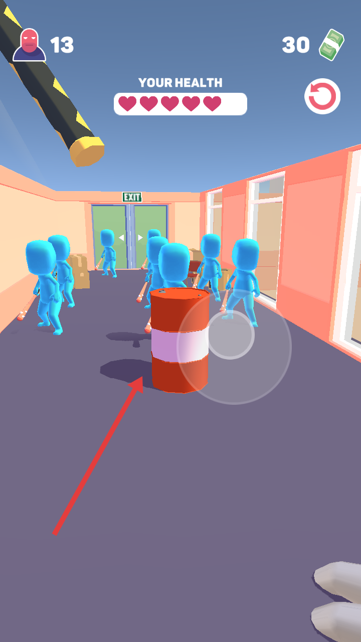 3、利用场景中的道具,如油桶,攻击敌人,同时避开敌人的攻击,向出口推进。