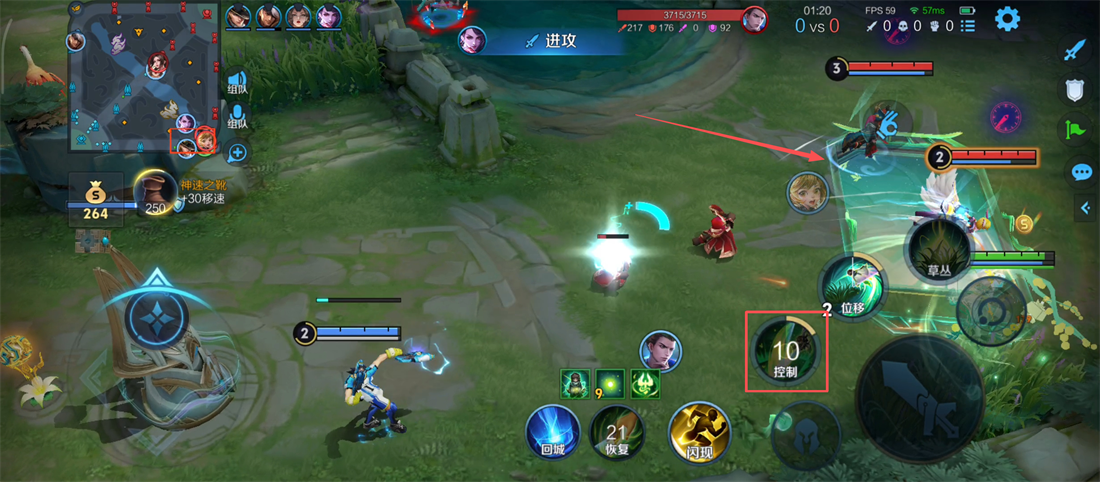 2、接着使用【控制】技能留人,为队友补伤害创造时机呀。