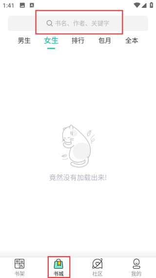 2、进入【书城】,用顶部搜索框查书名、作者,或通过分类浏览书籍。
