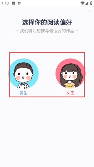 1、首次启动选阅读偏好,点击【男生】或【女生】频道,定制内容推荐。