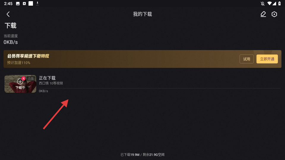 4、进入【我的下载】页面,可查看【西口情】等视频的下载进度,等待下载完成。